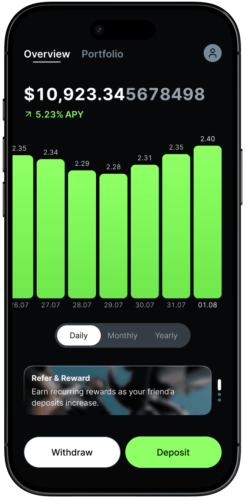 Watch your earnings grow in real time. With faster compounding than traditional or neo banks, your yield builds every second.